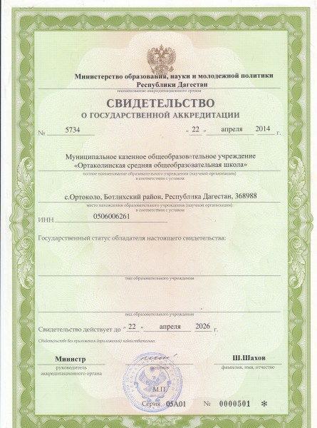 | Адрес местонахождения образовательной организации* | 368988 с.Ортаколо район Ботлихский РД |